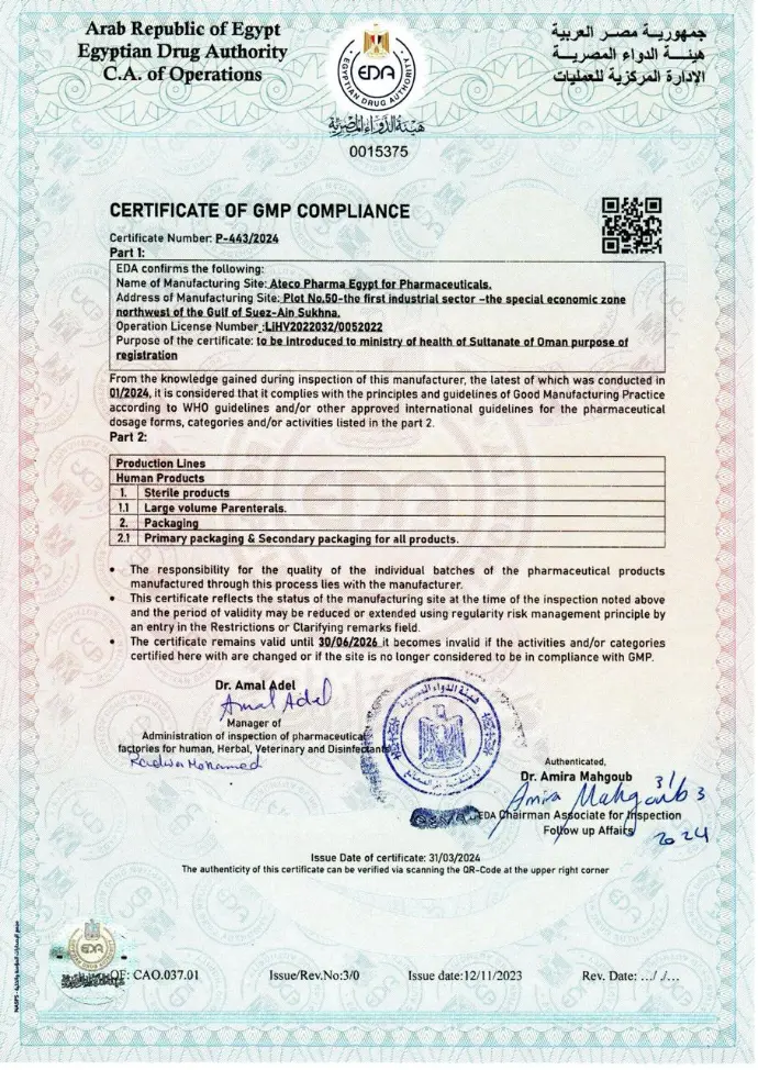 We are delighted to introduce ATECO Pharma Egypt, a company focused on producing high-quality pharmaceutical products, especially intravenous (I.V.) solutions, that meet both national and international standards. At ATECO Pharma, we care about quality, innovation, and safety in every step of our work. Our goal is to provide trusted products that support better health and make a real difference for patients every day