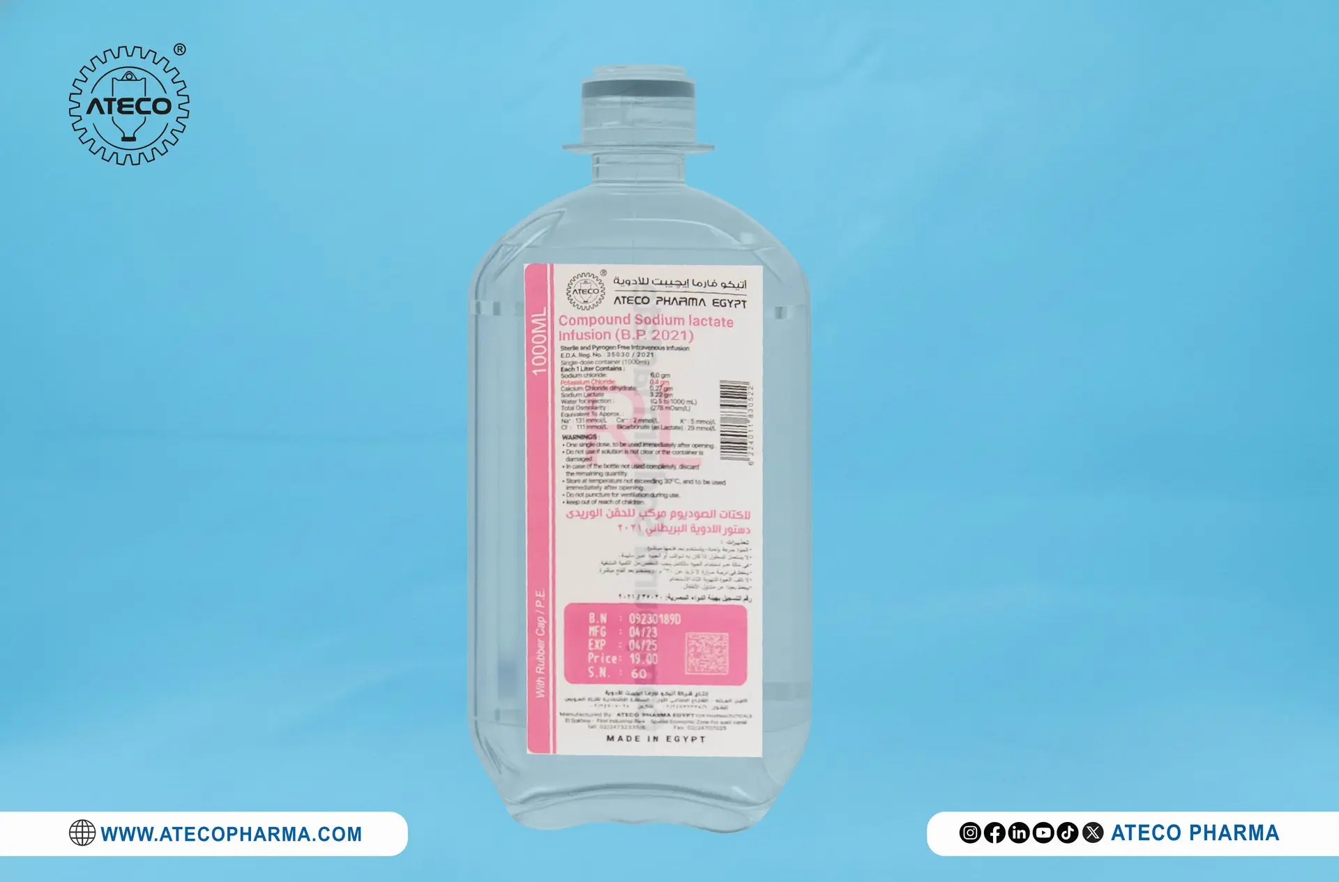 Compound sodium lactate ( Ringer Lactate ) infusion(RL) w.c 1000 (PE)